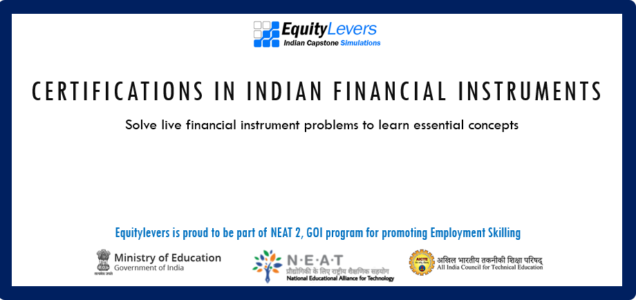 Our skilling simulations are designed to help learners solve real world cases and problems and learn the concepts. We bring to you a unique self study (also assignable by instructors) journey through 15 + live debt, equity and gold financial instruments.